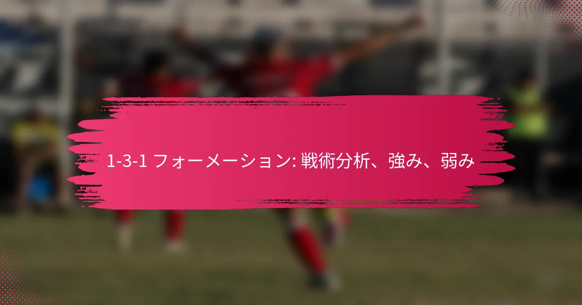 サッカーにおける1-3-1フォーメーションは、1人のゴールキーパー、3人のディフェンダー、1人のミッドフィールダーからなる戦術的な配置であり、守備と攻撃の両方にバランスの取れたアプローチを提供します。このフォーメーションは、守備の組織とミッドフィールダーの支配のユニークなバランスを提供し、効果的なボール保持とカウンターアタックを可能にしますが、守備の移行時の脆弱性やハイプレスの相手に対する課題といった特定の弱点もあります。
