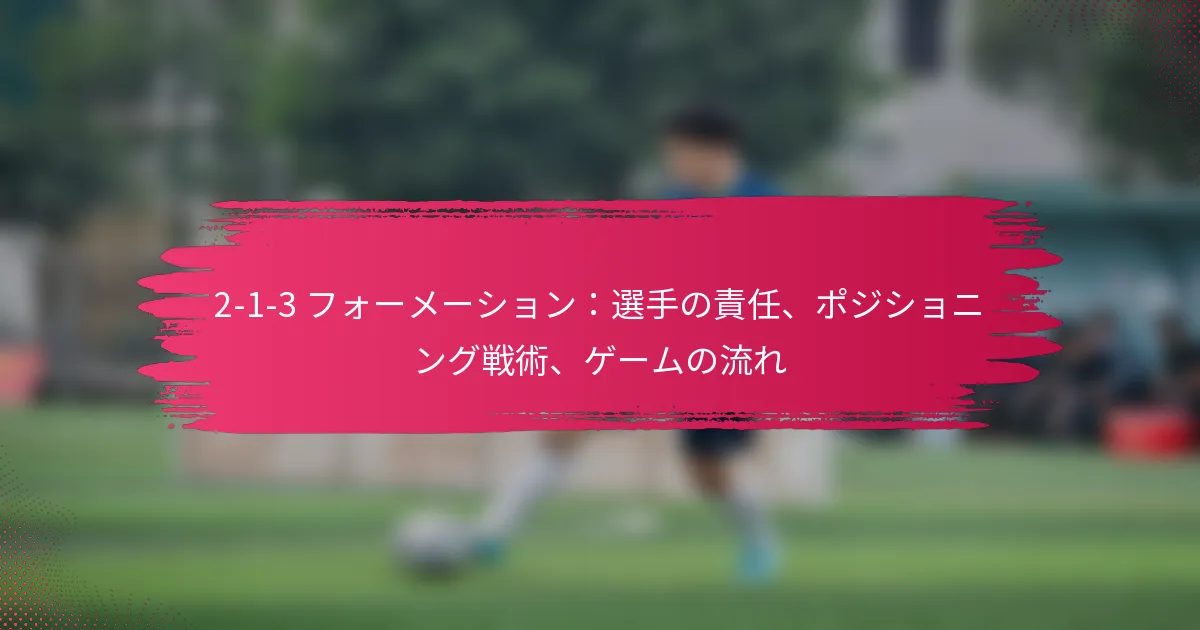 2-1-3フォーメーションは、防御とミッドフィールドコントロールのバランスの取れたアプローチを提供し、強力な相手に対して効果的です。しかし、攻撃のオプションが制限され、構造を維持するために規律ある選手が必要です。