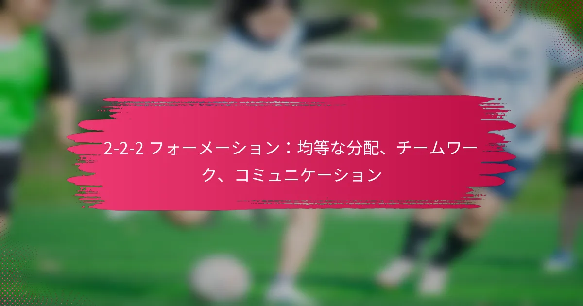 2-2-2フォーメーションは、さまざまなチームスポーツで使用される戦略的な配置で、3つのラインにそれぞれ2人の選手が配置されることが特徴です。この構造はフィールド全体に選手を均等に分散させ、チームメンバー間のチームワークとコミュニケーションを強化します。