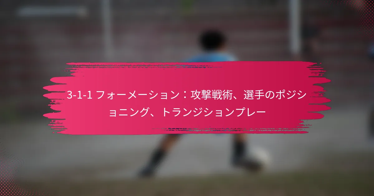 サッカーにおける3-1-1フォーメーションは、3人のディフェンダー、1人のミッドフィールダー、1人のフォワードから成る戦術的な配置で、守備の堅実さと攻撃の可能性をバランスよく兼ね備えています。このセットアップは、堅固な守備構造を提供するだけでなく、得点機会を活かすための迅速なトランジションを促進し、選手の効果的なポジショニングと動きが成功にとって重要です。